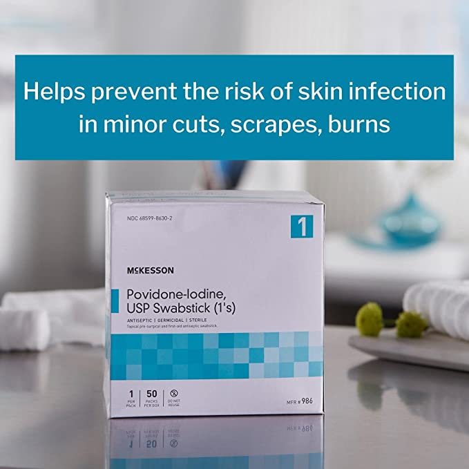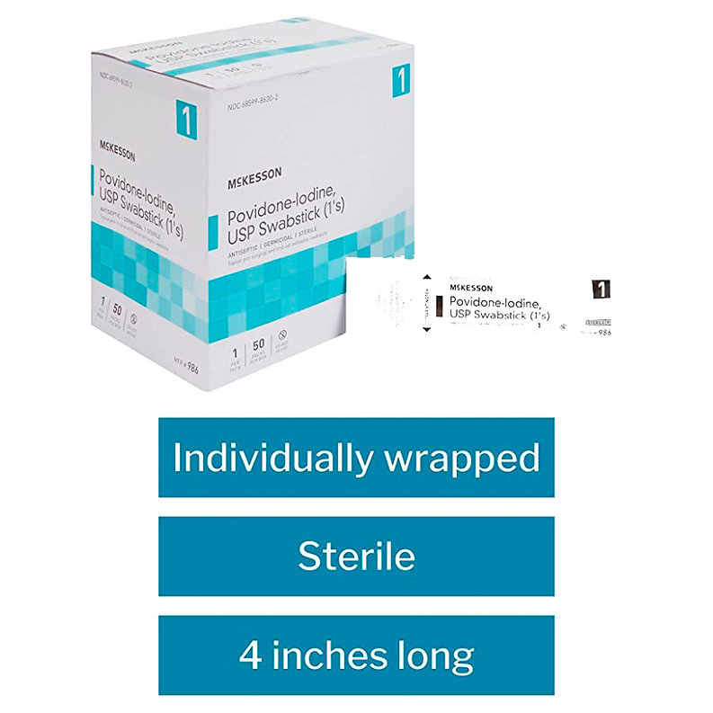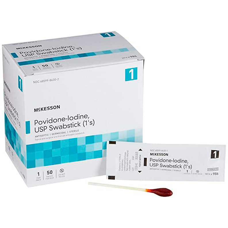 McKesson Povidone-Iodine Impregnated Swab Stick, Sterile – 4 in, 50 Sticks, 1 Pa