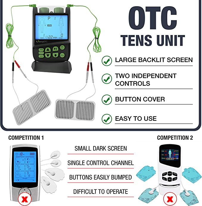 - 1 Year Warranty: You get (1) Ultima OTC TENS device, 4 self-adhesive electrode pads, two pairs of lead wires, two AA batteries and manual – everything is included. And your TENS unit is back by a 1 year warranty against all manufacturers defects.